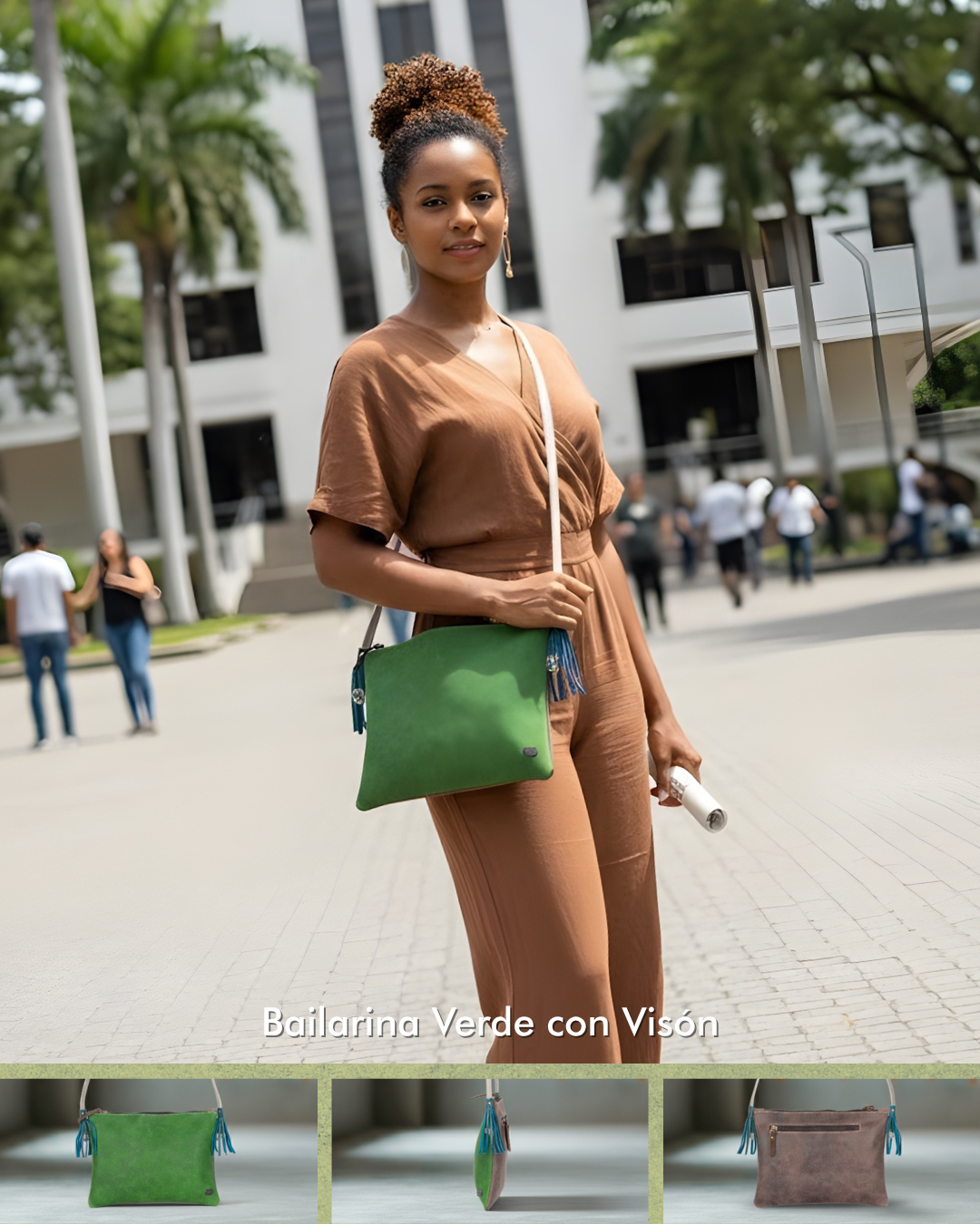 Fabricado en 100% cuero nuestro manos libres, trae dos súper prácticas manijas para que lo lleves de mano y una correa de cuero ajustable para que puedas cruzarlo y caminar cómodo a donde necesites.