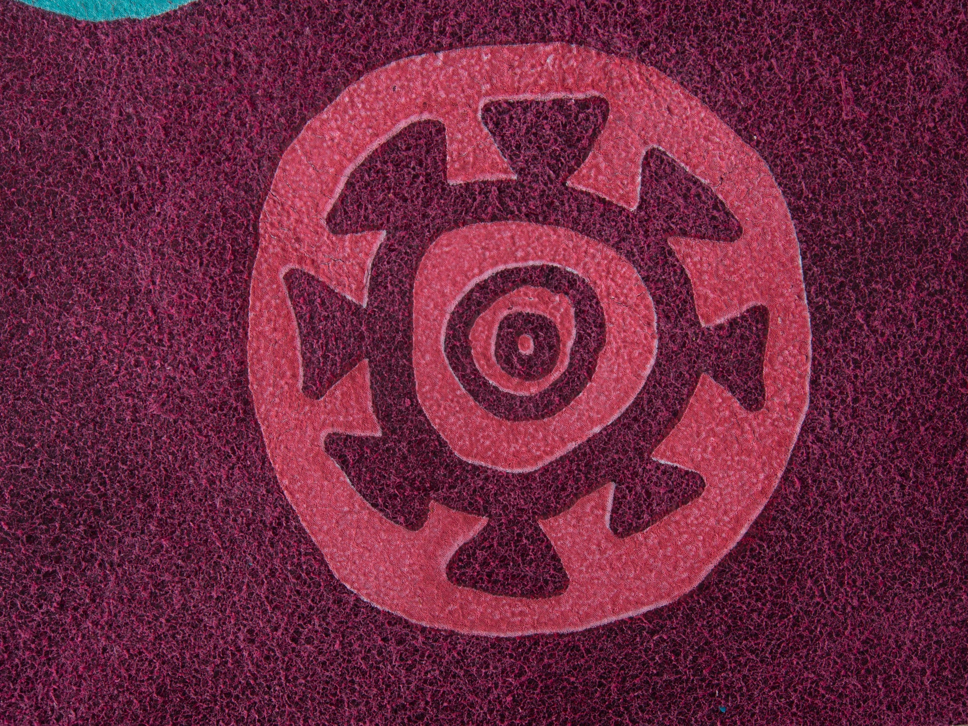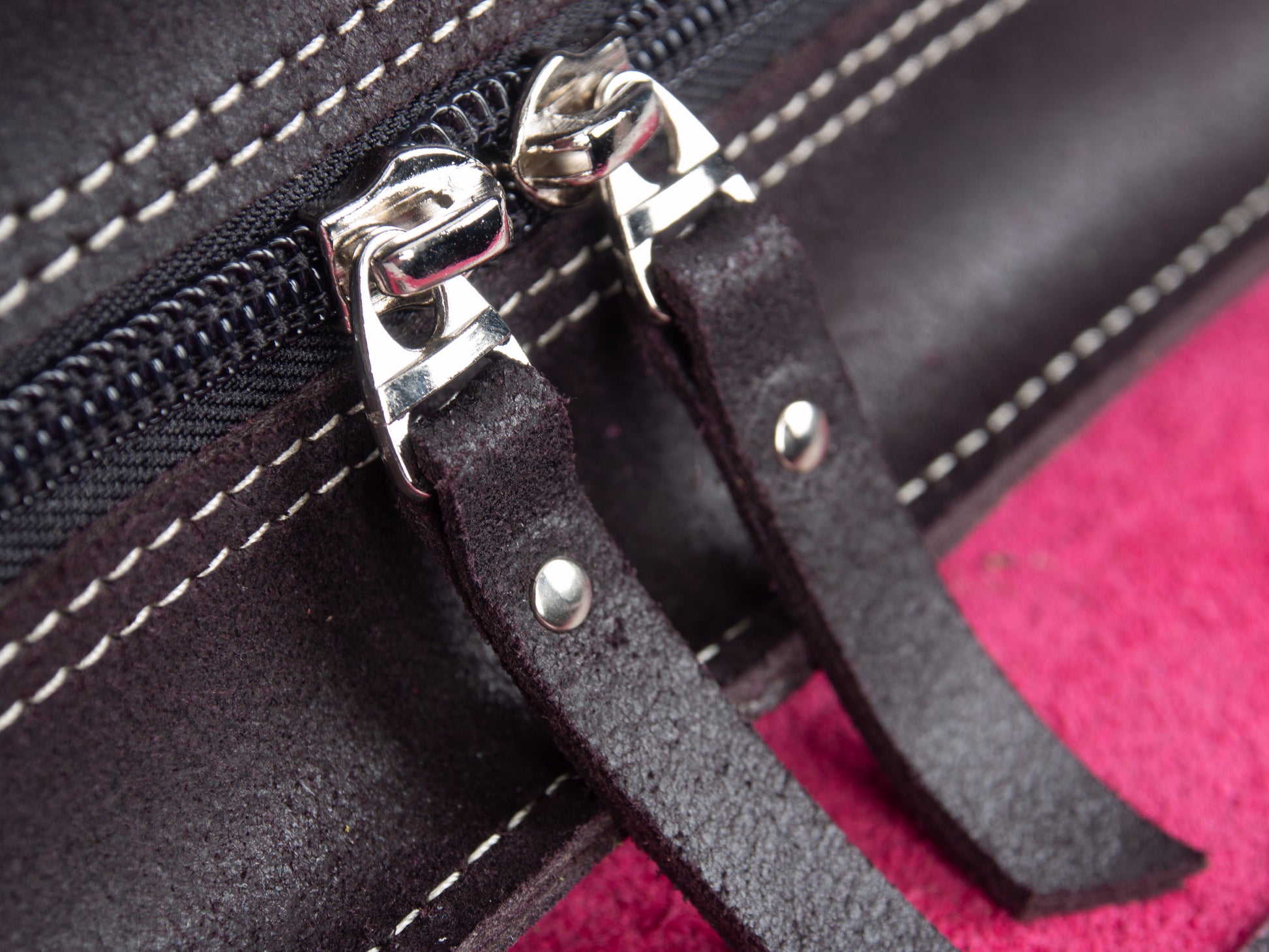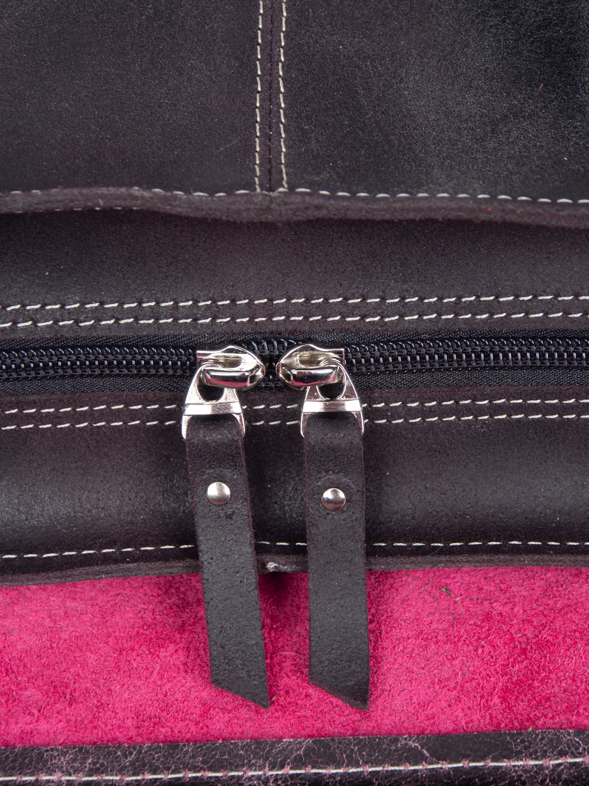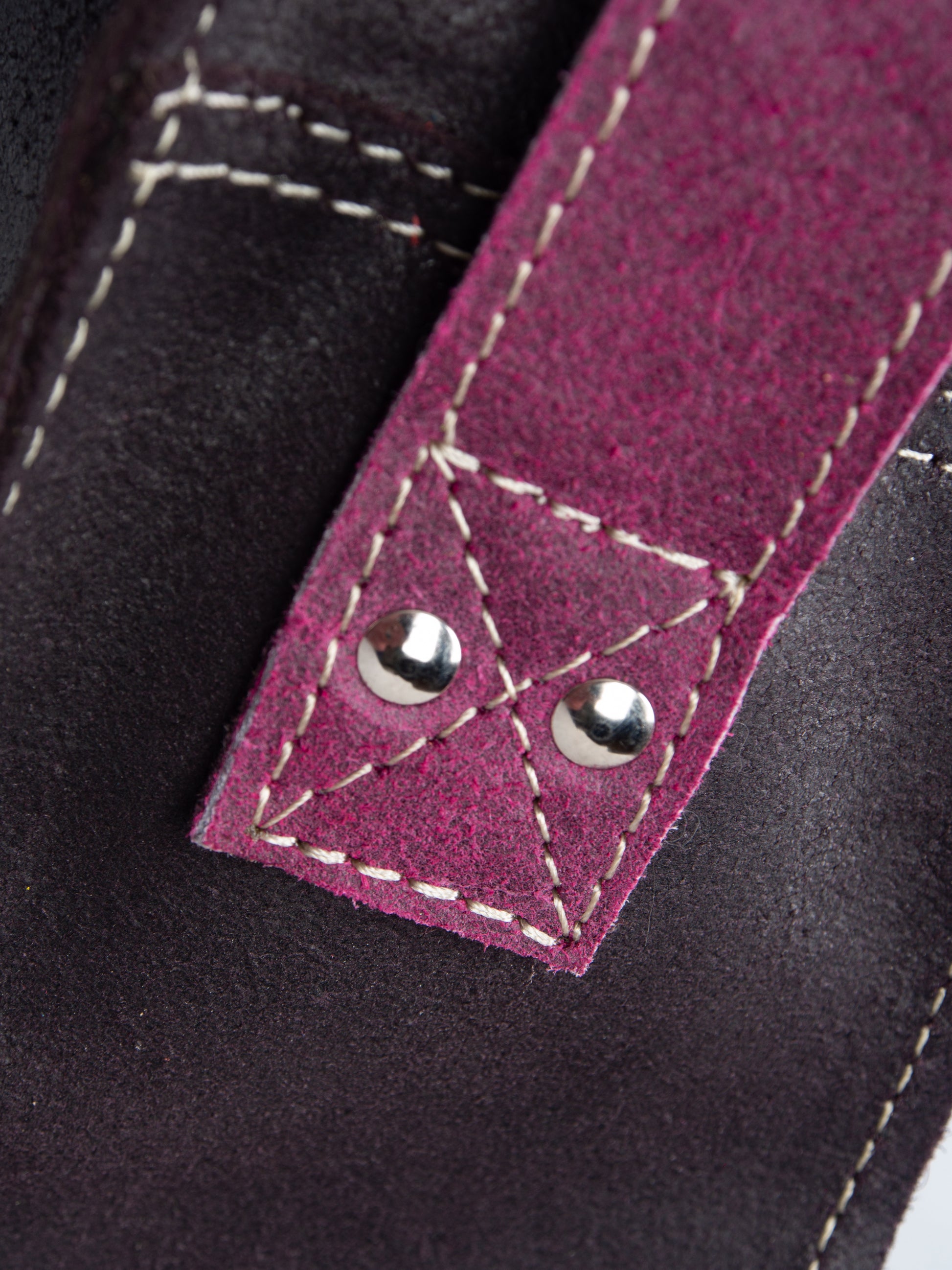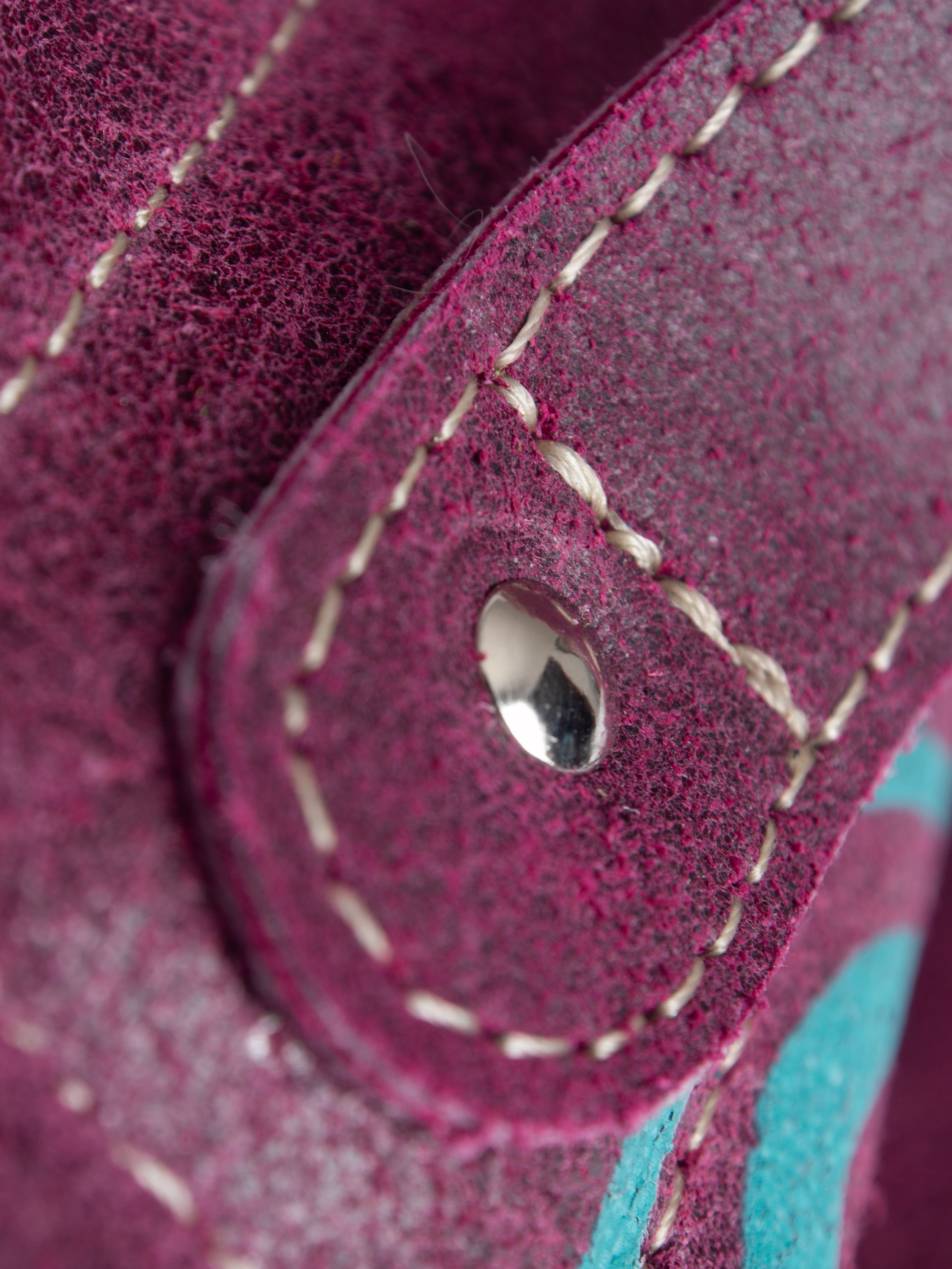 Bolso Asís en cuero Fucsia craquelado con diseño gráfico retro | Edición única
